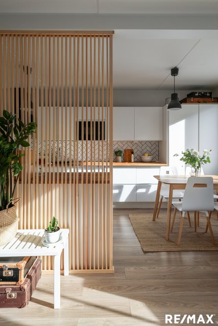 Asunnon avokeittiö ja olohuone tarjoavat näkymät Suvilahdenkadulle, kun taas makuuhuoneista avautuu rauhallinen näkymä vehreälle sisäpihalle.