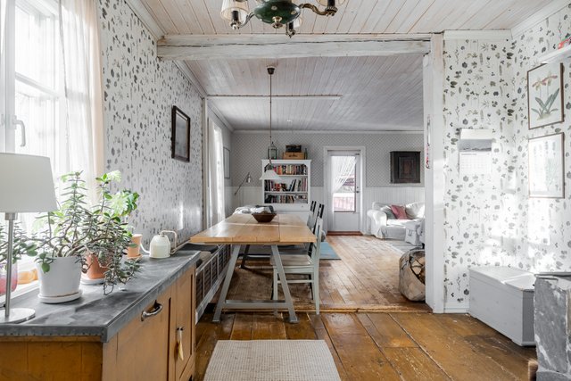 Talon alkuperäinen keittiö on sijainnut rakennuksen keskellä, ja nykyinen keittiö on toiminut ennen makuuhuoneena. Jos tarvitset lisää makuuhuoneita, keittiön voi halutessaan palauttaa vanhalle paikalleen ja saada taloon yhden huoneen lisää.