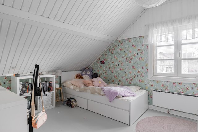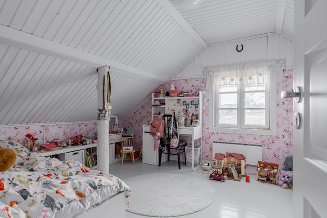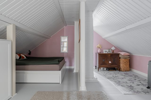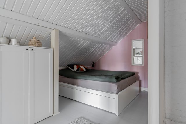 - Yläkerrassa kolme makuuhuonetta. Alakertaan mahdollista rakentaa neljäs, mikäli keittiön siirtää takaisin alkuperäiselle paikalleen olohuoneen viereen/yhteyteen.