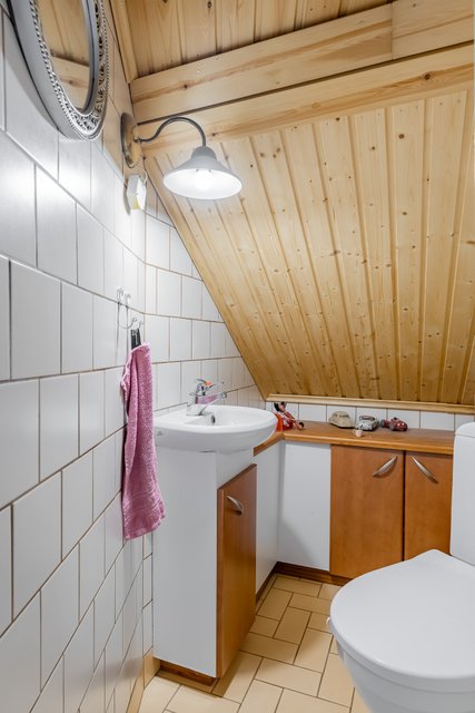 - Yläkerrassa pieni WC. Alakerran kylpyhuoneessa myös WC.