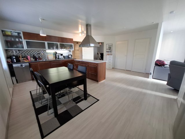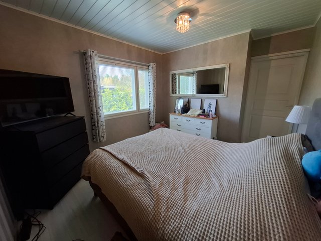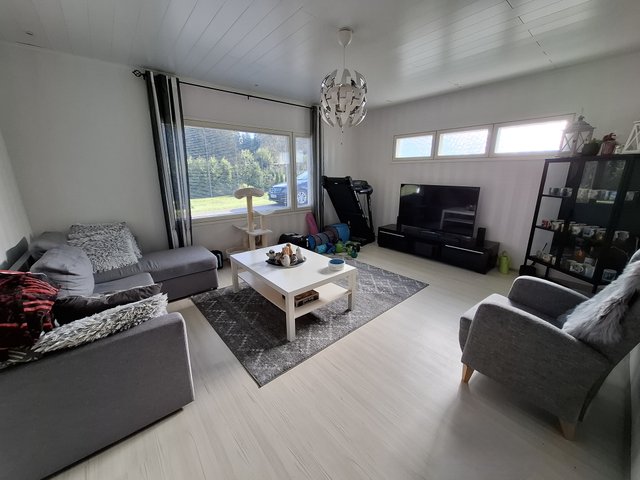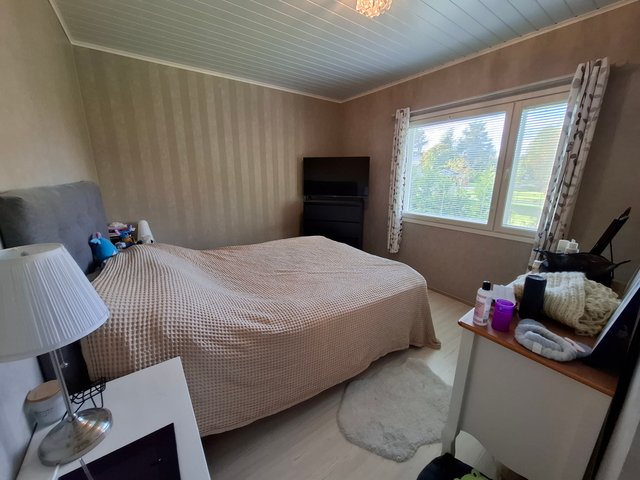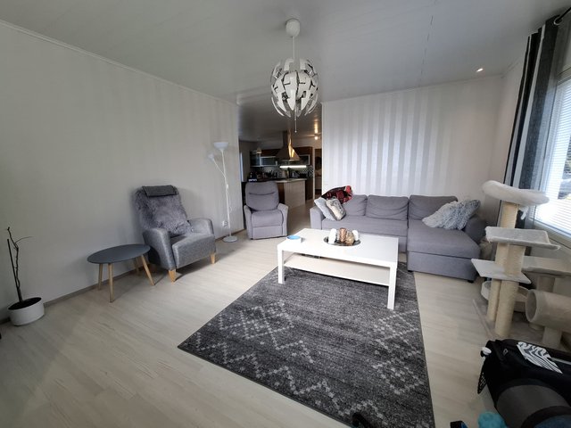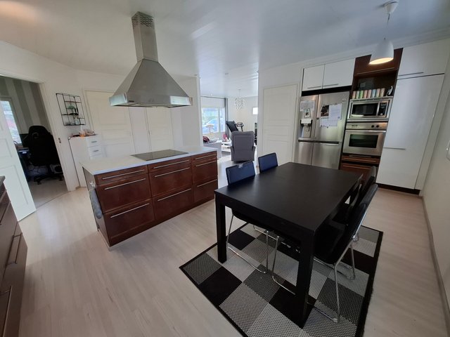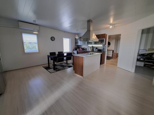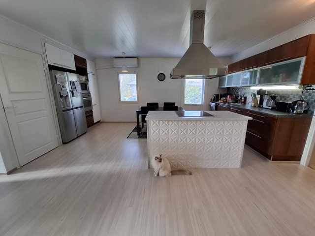 - Varustus: keittiösaareke, astianpesukone, liesituuletin, uuni, saarekkeessa keraaminen liesitaso, jääkaappipakastin ja mikro. Laminaattilattia ja seinät maalattu.