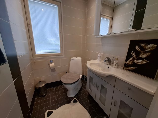 - Varustus: suihku, suihku seinä ja lattialämmitys. Laattalattia ja kaakeli seinät.