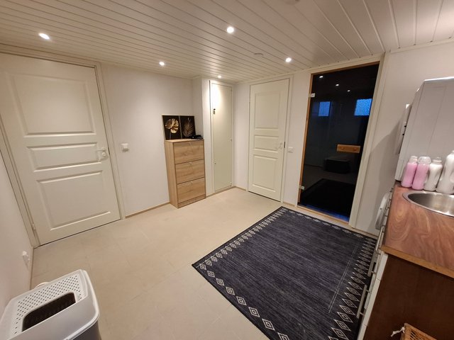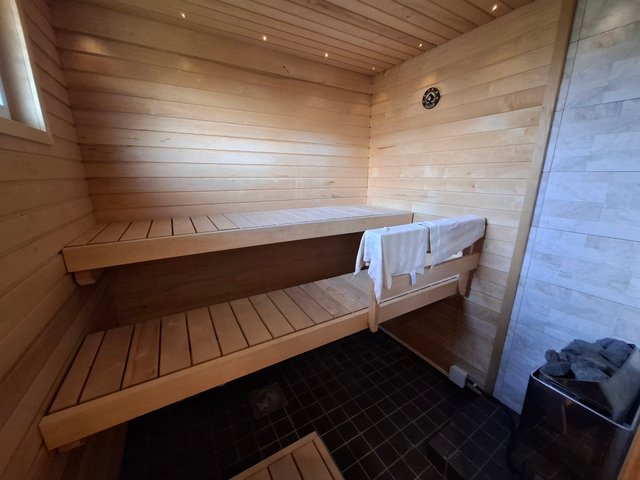 - Varustus: Sähkökiuas. Laattalattia ja puu seinät.