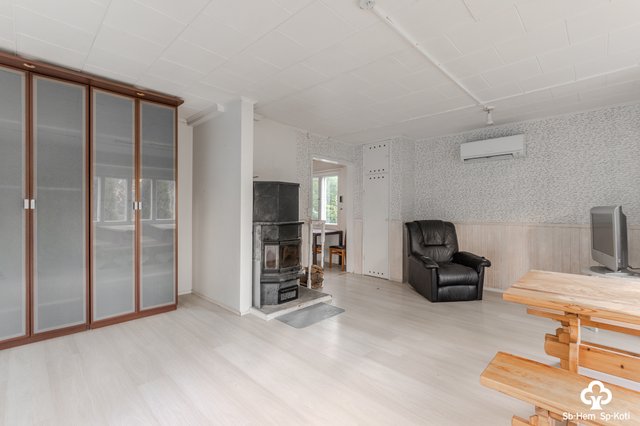 Lämmitysjärjestelmä koostuu ilmalämpöpumpusta, sähköstä ja puulämmityksestä, ja olohuoneessa on lämpöä varaava takka, joka luo tunnelmaa viileinä iltoina. Keittiö on varustettu nykyaikaisilla laitteilla, ja kylpyhuoneessa on mukavuuksia, kuten lattialämmitys ja pesukoneliitäntä. Pihalla on siirrettävä sauna ja kaksi liiteriä, jotka täydentävät mukavasti asumista.