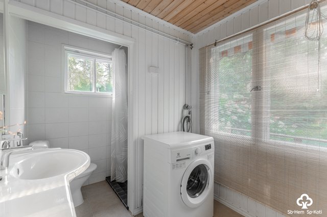 - WC-istuin, suihku, pesukone, pesukoneliitäntä, lattialämmitys, peilikaappi, allaskaappi, bidee-suihku, ja pesuallas