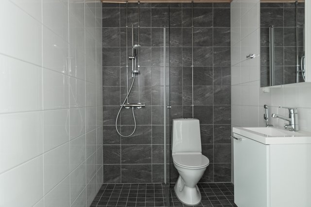 - WC-istuin, suihku, pesukoneliitäntä, allaskaappi, ja lattialämmitys