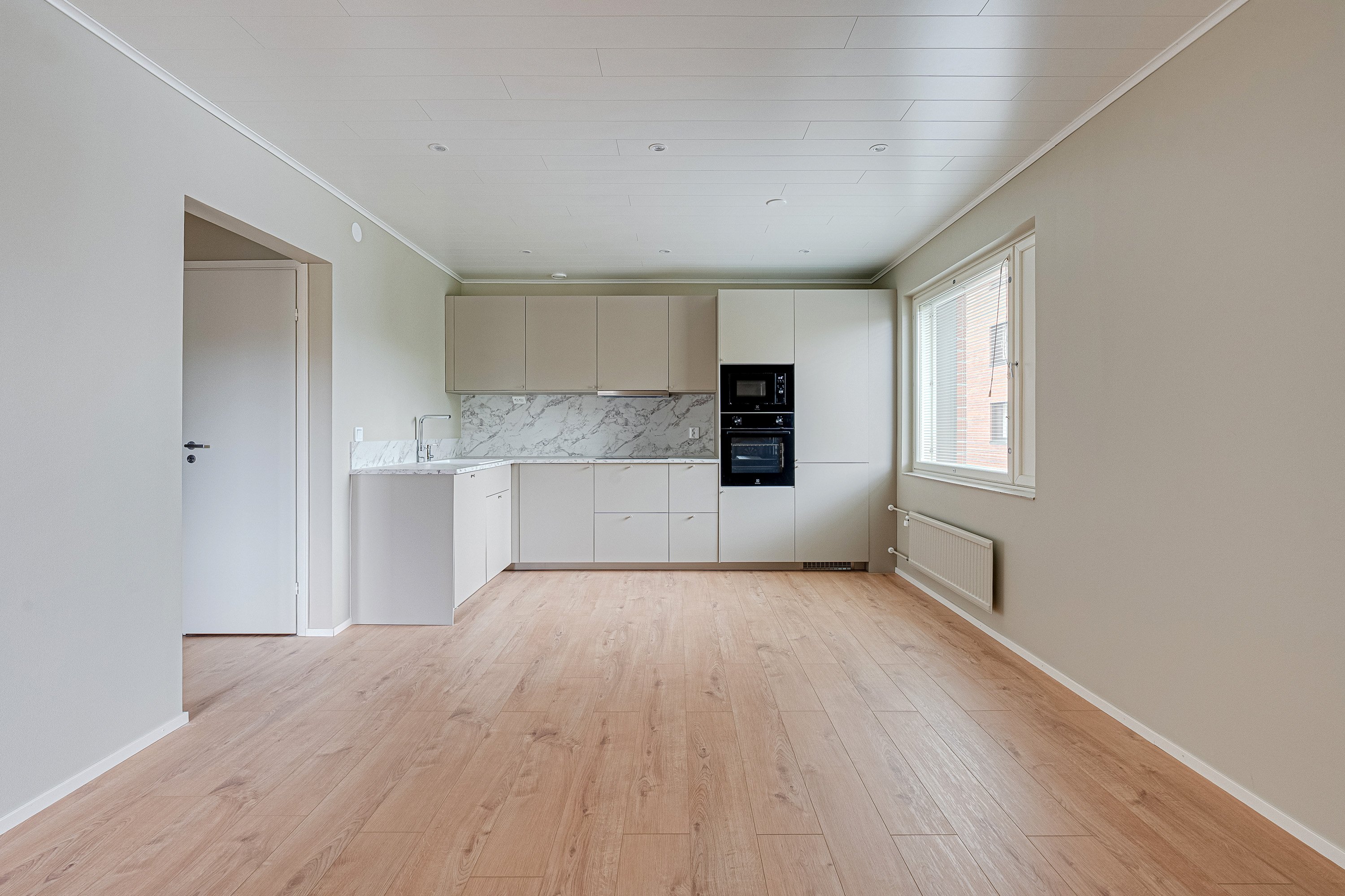 Huoneistossa on tehty kattava remontti, joka on valmistunut 10/2025. Kaikki huoneiston pinnat on uusittu. Keittiö on avattu olohuoneen kanssa yhteiseksi tilaksi johon mahtuu ruokapöytä ja isompikin sohva. Kylpyhuone on uusittu kokonaisuudessaan ja tilasta on saatu todella näyttävä. Isomman makuuhuoneen yhteydessä on tilava kaapisto valmiina.
