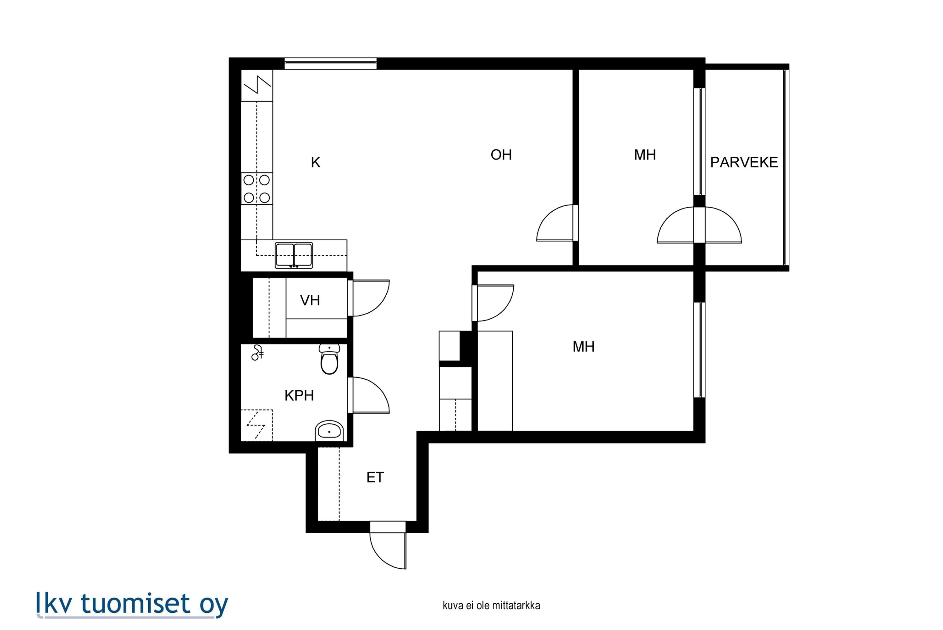oh, avokeittiö, 2mh, kph, vh ja lasitettu parveke