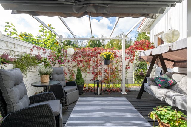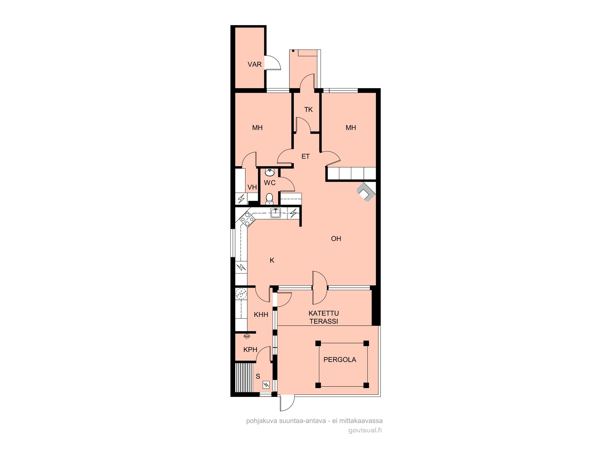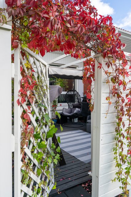 - Lämpöpuhallin pesuhuone, sälekaihtimet, varaston hyllyt, kenkäkaappi, takapihan katos, makuuhuoneiden pimennysverhot