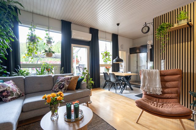 Muuttovalmis 73 m2 yksikerroksinen rivitalokoti aivan Tiiriön palveluiden ja hyvien ulkoilumaastojen vieressä. Tässä valoisassa päätyasunnossa on muun muassa 2024–2025 remontoitu keittiö sekä varaava takka ja ilmalämpöpumppu. Suojaisaa puutarhamaista terassialuetta löytyy sekä etu- että takapihalta, jonka yhteydessä on myös viihtyisä pergola. Asunnolle kuuluu huoneistokohtainen eristetty varasto sisäänkäynnin yhteydessä sekä autokatospaikka ja sähköpistokepaikka. Huoltoyhtiö hoitaa kiinteistönhuollon ympäri vuoden!