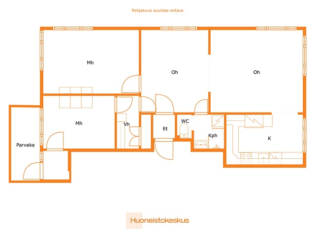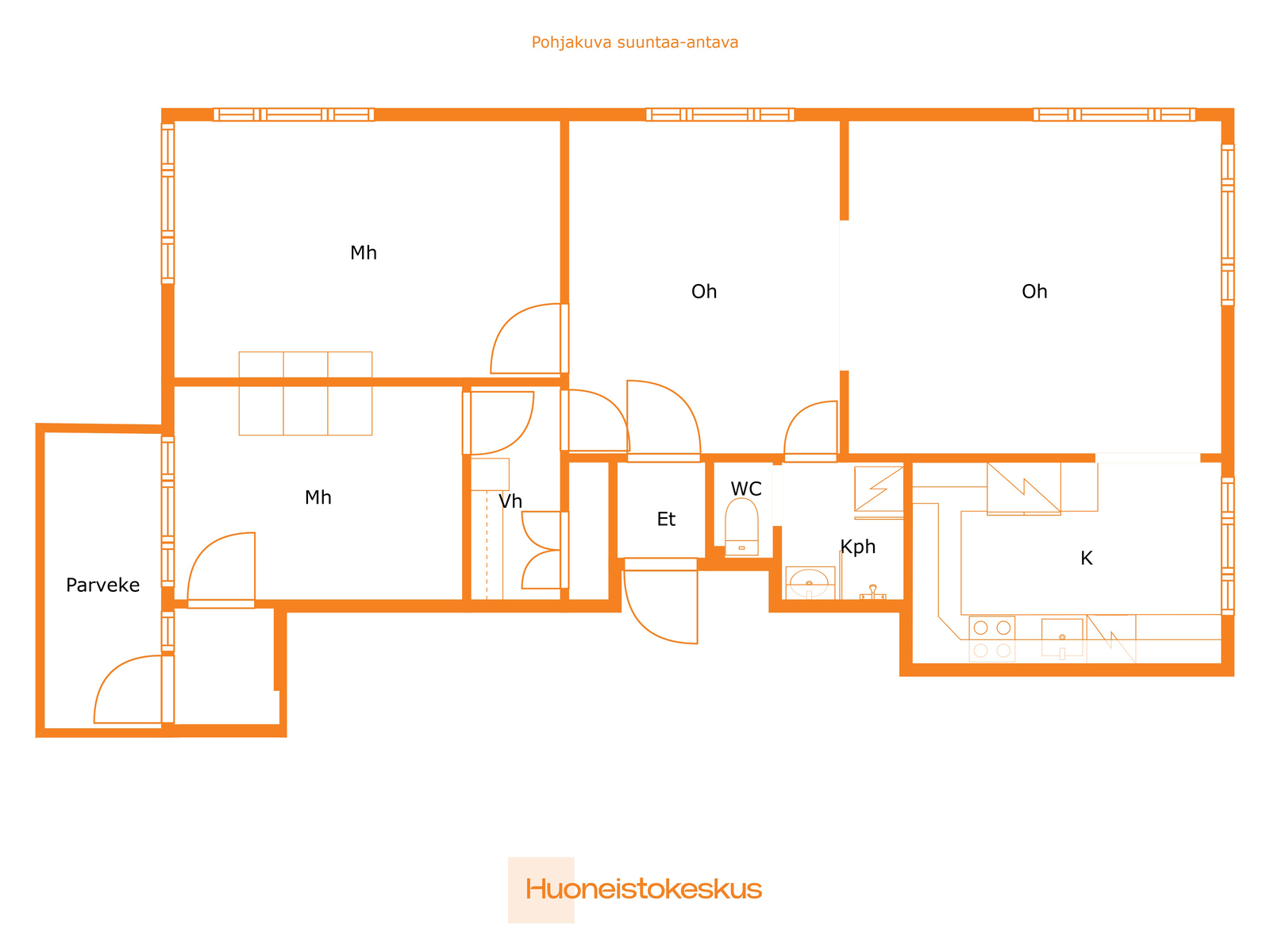 3-4 h, k, kph, wc, parveke (yht. järj. muk. 4h+k+kph+WC)