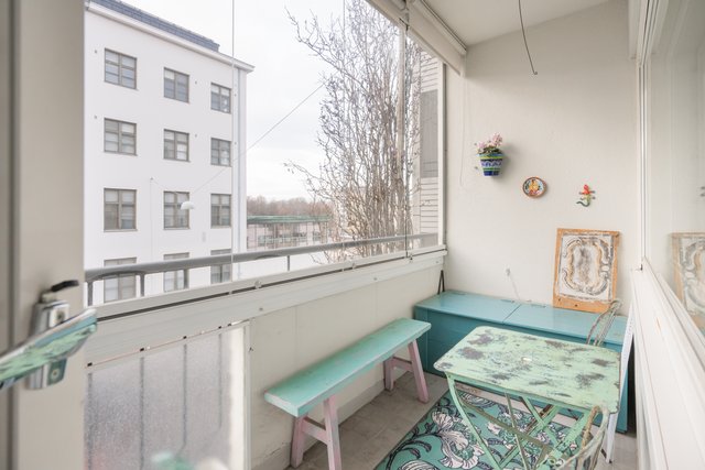 Tämä valoisa ja tilava 70 m² parvekkeellinen koti sijaitsee erinomaisella paikalla, keskellä palveluita ja silti rauhallisella kadulla. Kävelyetäisyydeltä löydät kahvilat, ravintolat, koulut, ruokakaupat ja monet muut arkea helpottavat palvelut.