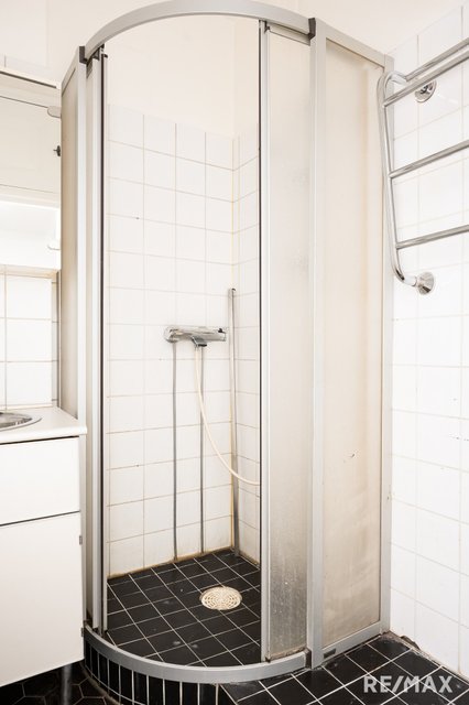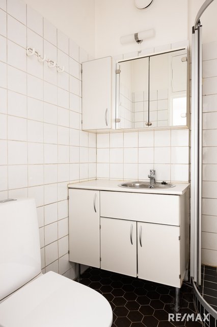 - WC-istuin, suihkukaappi, pesuallas, allaskaappi, pesukoneliitäntä, ja suihku