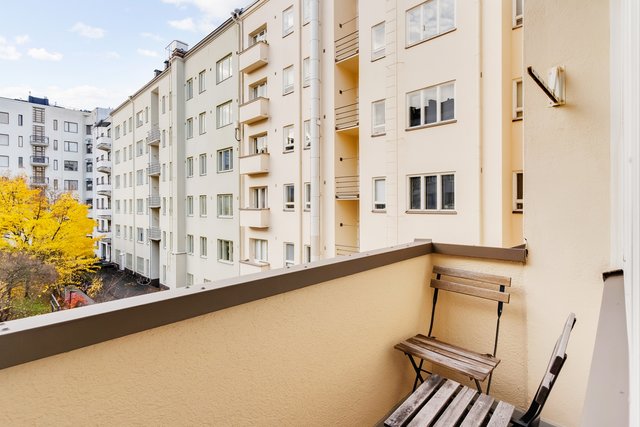 - Parvekkeelta ja keittiöstä näkymät sisäpihalle. Olohuoneesta ja makuuhuoneesta Töölöntorinkadulle
