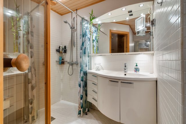 - Suihku, pesukoneliitäntä, peilikaappi, wc-istuin, suihkuseinä, ja pesukone ja kuivausrumpu kuuluvat kauppaan.
