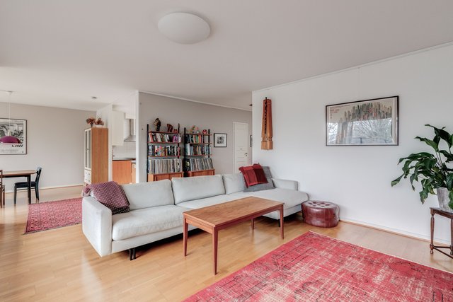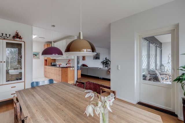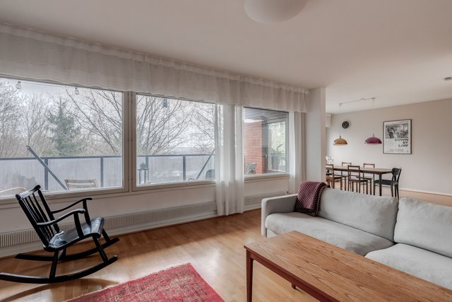 - Avarat puistomaiset näkymät olohuoneesta ja ruokailutilasta