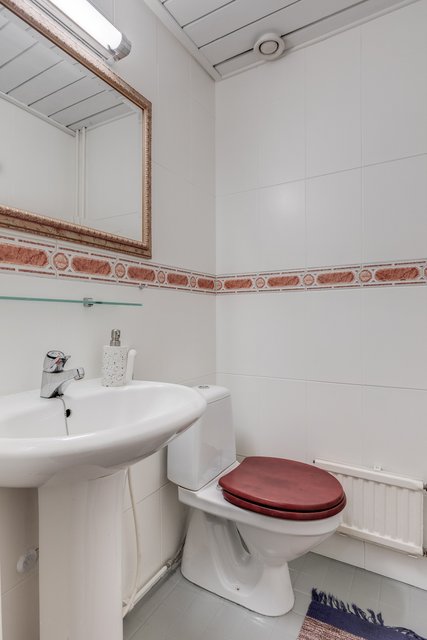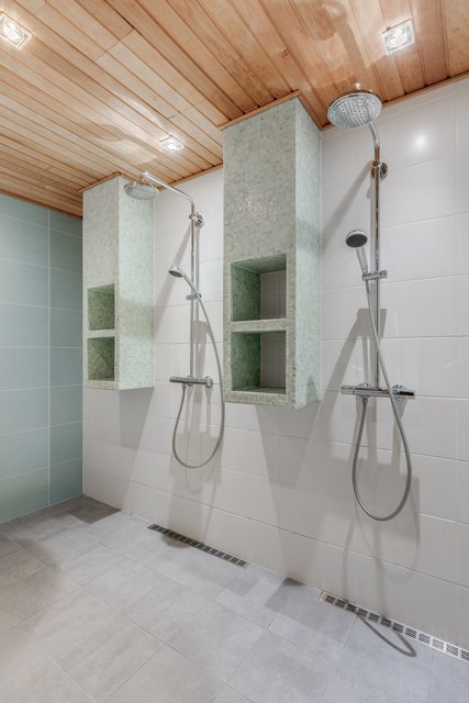 - Kylpyhuone Kuvaus: Alakerran kph:ssa: kaksi suihkua ja wc-tila, missä wcistuin, käsienpesuallas Yläkerran kph:ssa: poreamme, käsienpesuallas, allaskaapisto, peili Lattia: Laattalattia Seinät: Laattaseinä Sauna Varustus: Sähkökiuas Lattia: Laattalattia WC Kuvaus: Alakerran kph:n yhteydessä erillinen wc-tila. Alakerrassa myös toinen erillinen wc (wc-istuin, käsienpesuallas, peili) sekä yläkerrassa erillinen wc (wc-istuin, käsienpesuallas, allaskaapisto, peili). Lattia: Laattalattia Seinät: Laattaseinä