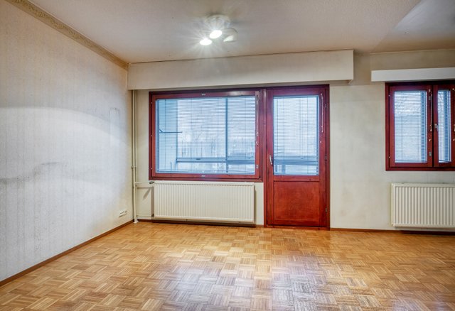 - Huoneesesta käynti lasitetulle parvekkeelle.