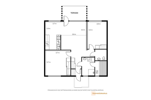 - Päätyhuoneisto: sisäänkäynti itään, piha ja terassi länteen.