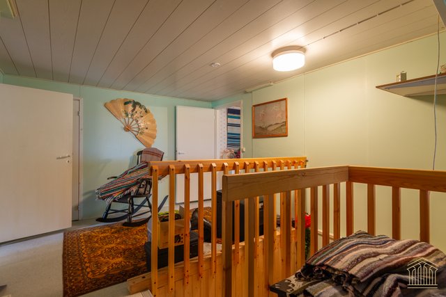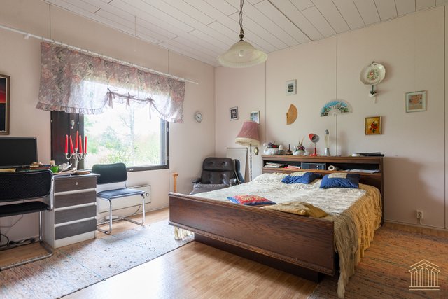 Talossa on ainutlaatuinen tunnelma normaalia korkeamman huonekorkeuden ansiosta ja tilvat huoneet luovat lisää avaruutta. Yläkerrassan makuuhuoneiden lisäksi on iso katettu parveke.