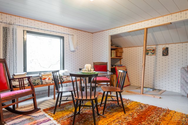 - Makuuhuone 1 (alakerta): Varusteet: komerot 3 kpl Lattiamateriaali: muovimatto Seinämateriaali: tapetti Makuuhuone 2 (yläkerta): Varusteet: komerot 2 kpl Lattiamateriaali: muovimatto Seinämateriaali: tapetti Makuuhuone 3 (yläkerta): Varusteet: keittiötaso Lattiamateriaali: muovimatto Seinämateriaali: tapetti Takkahuone: Varusteet: takka Lattiamateriaali: muovimatto Seinämateriaali: tapetti