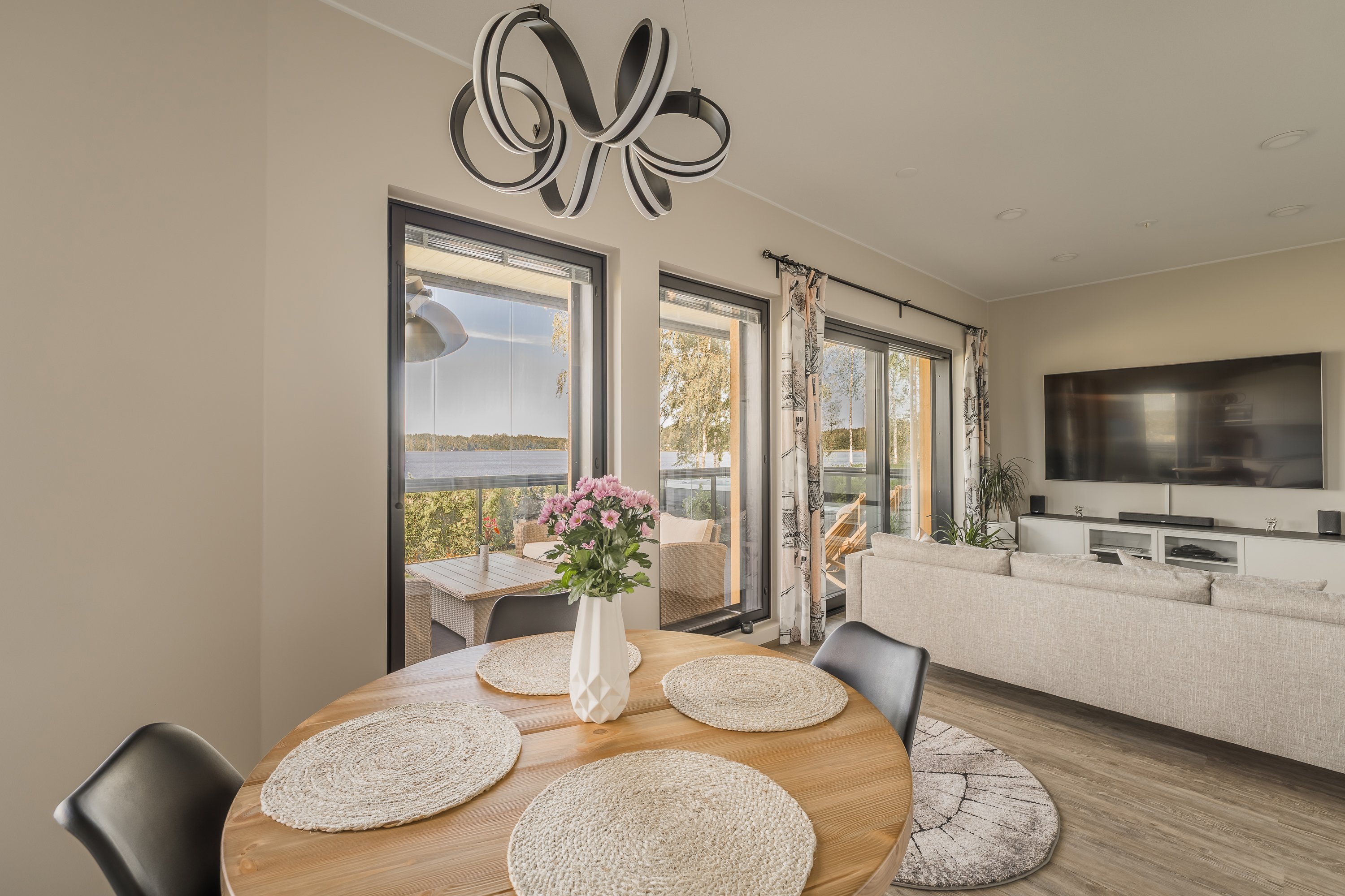 Taloyhtiö on valmistunut 12/ 2023 laatua arvostavalle – materiaalit ja varustelutaso ovat korkeatasoiset, huoneistokohtainen viilennys osana ilmanvaihtoa ja suuret lasiliukuovet avautuvat luontevasti lasitetulle terassille. Lasitetulle terassille mahtuu isompikin pöytä tai sohvaryhmä.