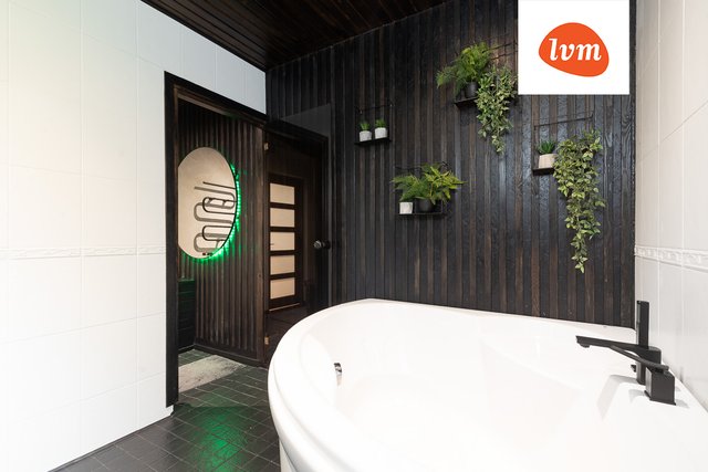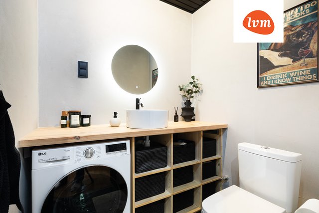 - WC-istuin, suihku, kylpyamme, suihkuseinä, pesukone, pesukoneliitäntä, peili, pesuallas, ja allaskaappi