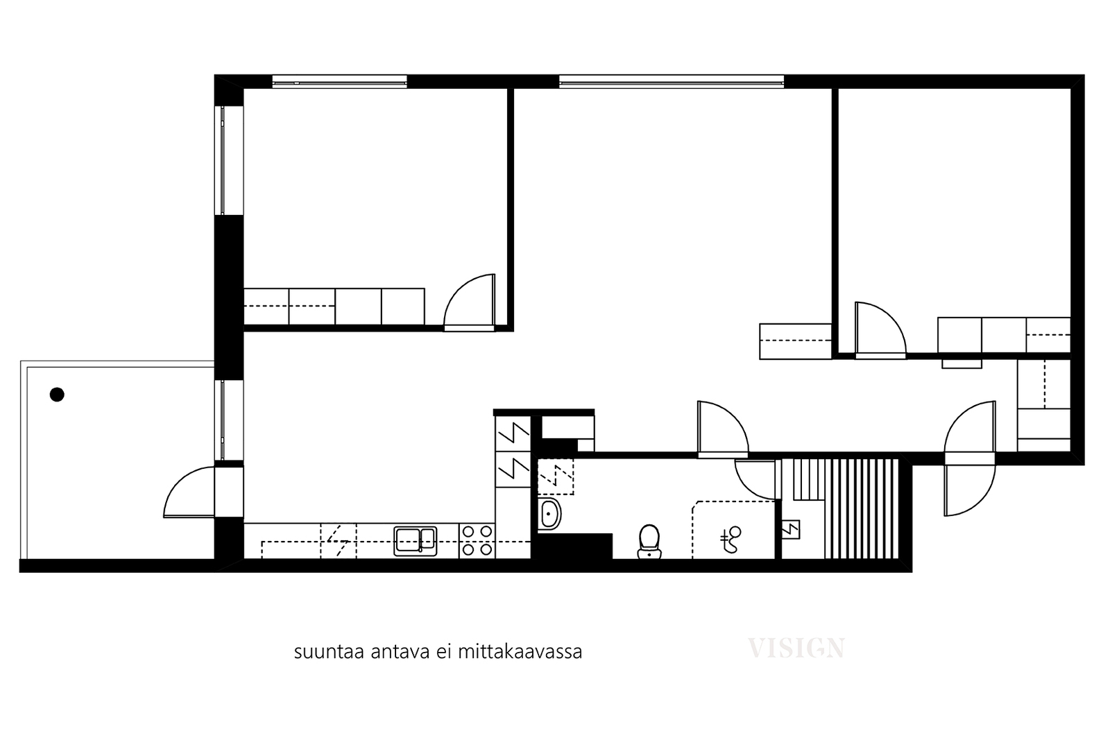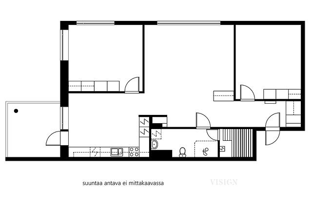 - Mainittu pinta-ala saattaa tämän ikäisessä kohteessa poiketa olennaisesti nykyisten standardien mukaan laskettavasta asuinpinta-alasta. Todellinen asuinpinta-ala voi olla yhtiöjärjestyksessä, isännöitsijäntodistuksessa ja esitteessä mainittua pienempi tai suurempi.