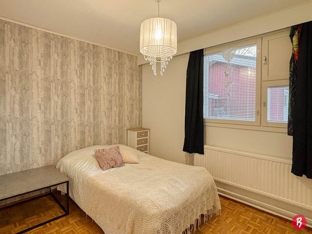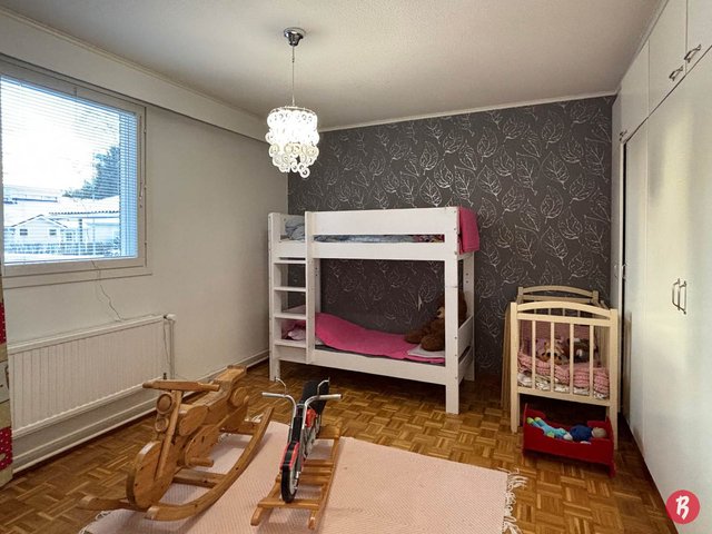 - Kaksi makuuhuonetta, joista isommassa on koko seinän mittainen kaapisto. Pienemmässä makuuhuoneessa myös kiinteät kaapit.