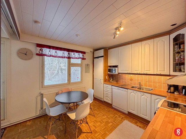 Koskipuhdossa kaukolämmössä oleva rivitalo kolmio. Asunto sijaitsee ulkoilureitin läheisyydessä ja takapiha rajoittuu Kalajokeen asti ulottuvaan peltoalueeseen. Ulkovarasto sekä autokatos omassa pihassa. Tilava kylpyhuone toimii myös kodihoitohuoneena, auttaen arjen pyöritystä. Tilaa löytyy pesutornille ja kaapistoja ja laskutilaa on sopivasti.