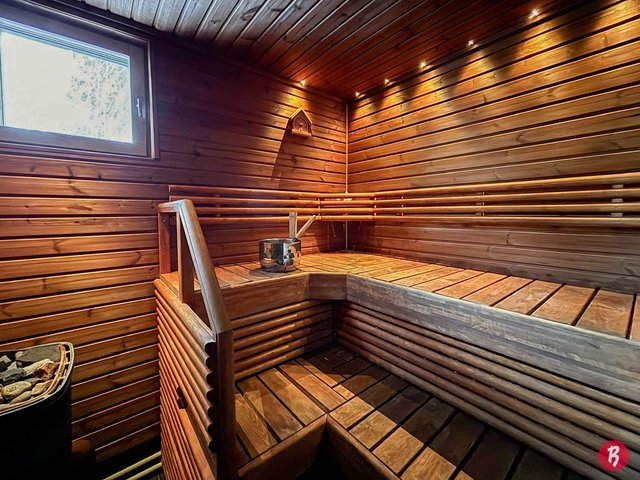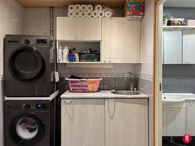 - Lattialämmitys, pesuallas, lattiakaivo, pyykkikaapit, pöytätaso, ja tila pesutornille