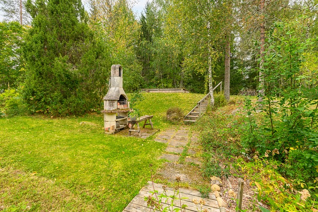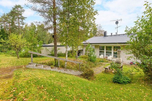 - Tontti nousee loivasti takapihalla kallion myötäisesti.