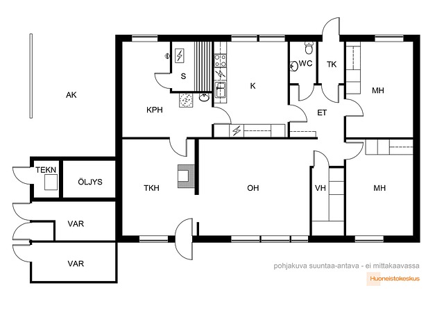 - Jääkaappipakastin, erillisuuni, astianpesukone, ja liesituuletin / hormi, kiinteät valaisimet