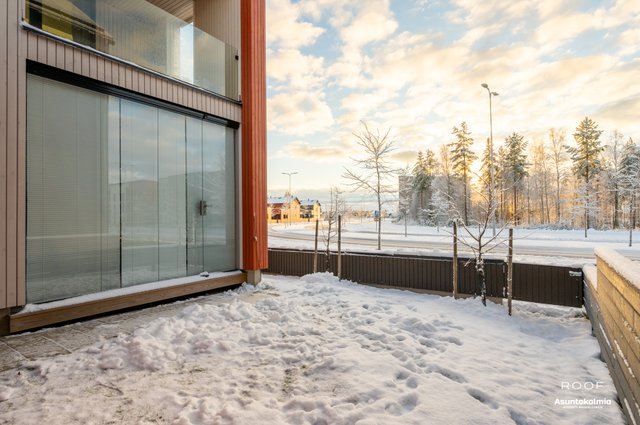 Asunto lämpenee kaukolämmöllä toteutetulla vesikiertoisella lattialämmityksellä ja on luonnollisesti muutenkin täydellisen moderni kokonaisuus. Huoneiston edessä on paikat kahdelle autolle, toinen katoksessa ja toinen ulko-oven edessä. Asunnolle kuuluu myös kaksi varastoa, joista toinen on lämmin.