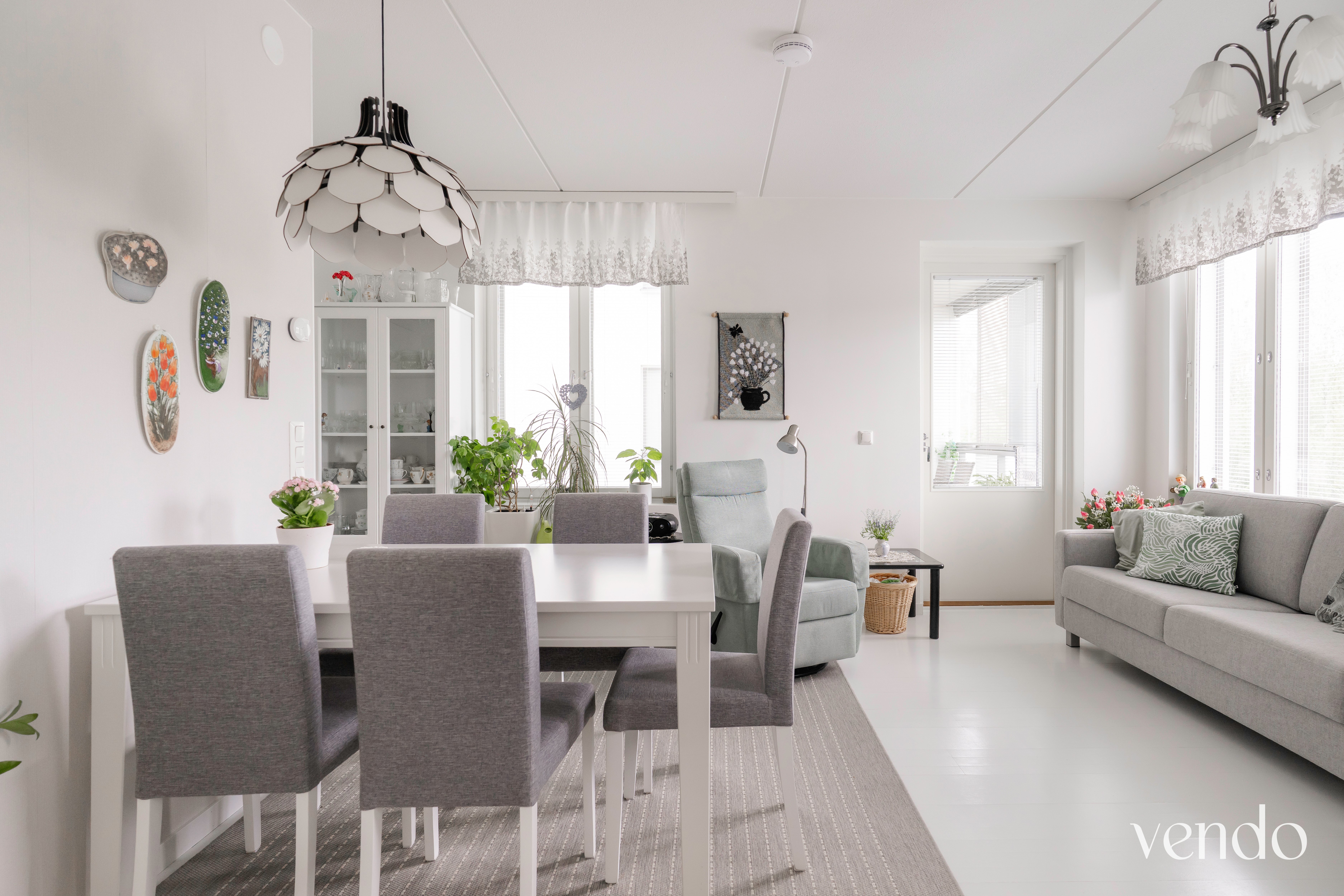 Koti on huolellisesti pidetty. Iso olohuone tarjoaa viihtyisän tilan oleskeluun ja yhdessäoloon, ja oma sauna tuo arkeen ripauksen ylellisyyttä. Tunnelma asunnossa on lämmin ja kodikas – juuri sellainen, jossa on helppo viihtyä.