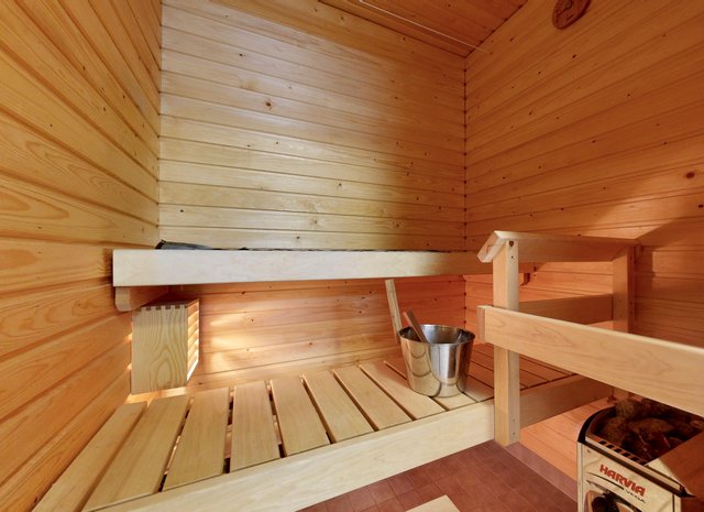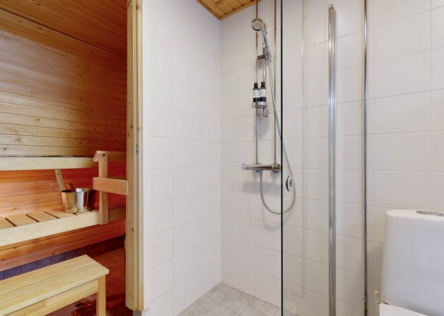 - VARUSTUS: Sähkökiuas. SEINÄ: Puu. LATTIA: Kaakeli.