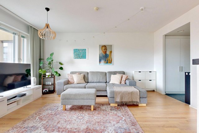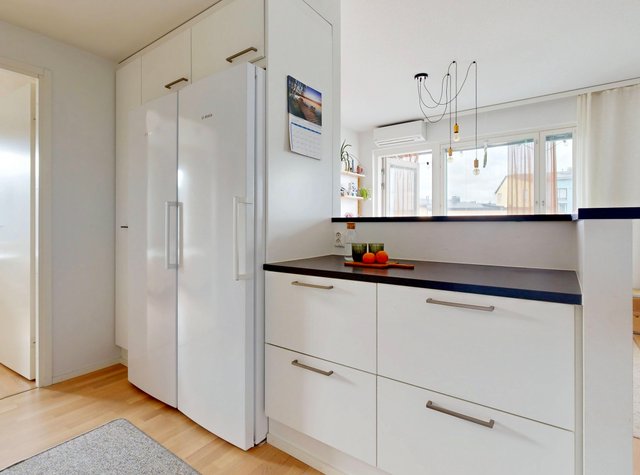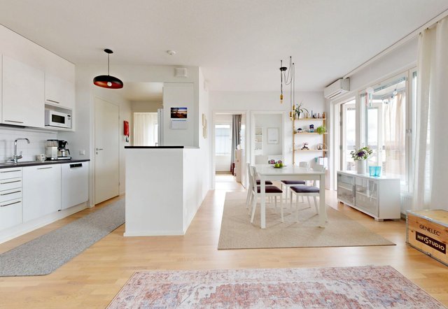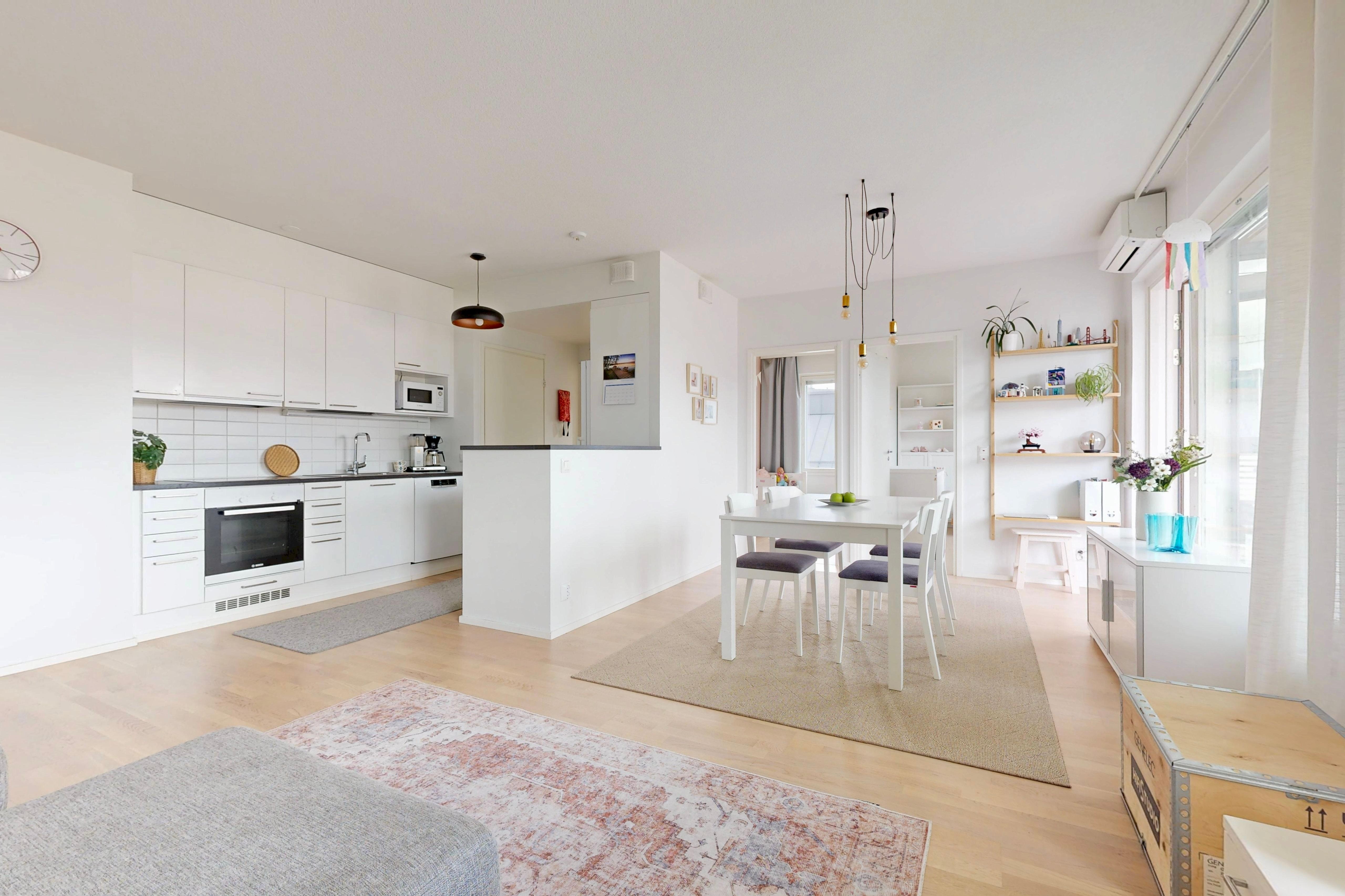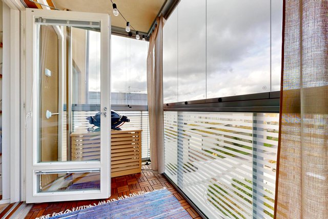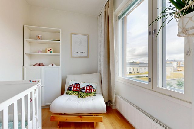 Tähän kotiin on helppo ihastua. Kulmahuoneisto, tilava ja toimiva pohjaratkaisu. Olohuone ja keittiö muodostavat yhtenäisen tilan, jossa on mukava viettää yhteistä aikaa. Olohuoneesta käynti myös lasitetulle parvekkeelle. Keittiössä on valkoiset kaapistot sekä hyvin säilytys-ja laskutilaa. Kolme makuuhuonetta. Kaikista makuuhuoneissa löytyy kaapistot. Eteisen vierestä löytyy erillinen wc, lisäksi kodissa on tilava kylpyhuone saunalla.