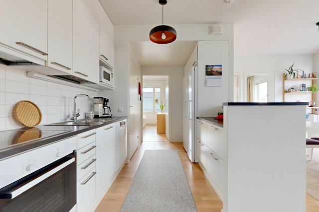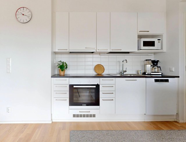 - VARUSTUS: Keraaminen liesi, Erillisuuni, Liesikupu, Hana, Kaapisto, Allas, Astianpesukone, Jääkaappi, Pakastin. TYÖTASO: Laminaatti. LATTIA: Parketti. SEINÄT: Välitila laatta. Maalattu.