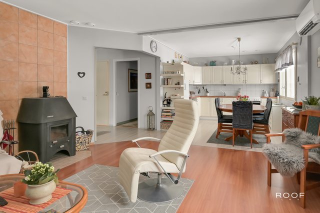 Mahdollisuuksien talo Kisassa! Täällä voit asua ja samalla pyörittää sekä kotitoimistoa että vastaanottoa. Talossa on nykyisessä muodossaan erillinen sisutettu asunto 4 huonetta, keittiö, 3 wc:tä ja pesuhuone + toimitila, pesuhuone, wc ja varastoja. Asunnolla ja toimitilalla on erilliset sisäänkäynnit. Rakennettu 1999. Sähkölämmitys, ilmalämpöpumppu ja takka. Ei lain edellyttämää energiatodistusta.