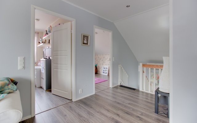 Päättyvän tien varrella rauhallisella asuinalueella -04 rakennettu tilava kaksikerroksinen OK-talo. Suojaisa takapiha, joka rajoittuu metsäalueeseen. Takapihalla katettu terassi ja aitta/varastorakennus. Talossa toimivat ja tilavat huoneratkaisut. Keittiön ja olohuoneen jakaa vuolukiven takka/leivinuuni.