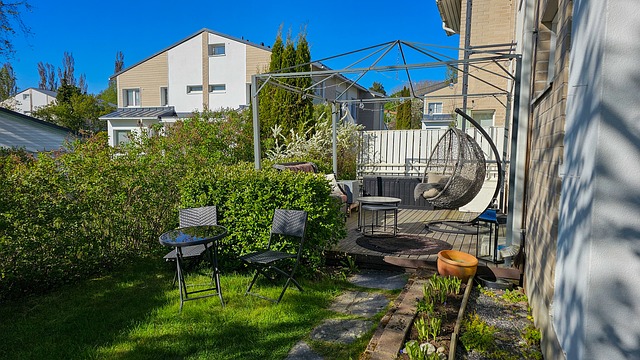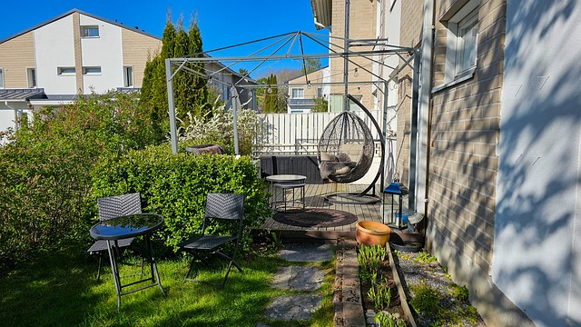 Piha on isohko rivitalon pihaksi ja auringon suuntaan. Terassi jää hieman nurkan taakse, mutta sinne on suora kulku keittiöstä. Näin grillaukset onnistuvat vaivattomasti. Oman pihan vieressä on yhtiön leikkipaikat, jonne lapsille on helppoa ja turvallista mennä leikkimään.