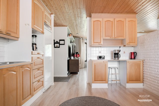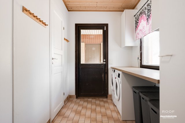- Varustus: pyykinpesukoneliitäntä, kaapisto, pöytätasot, lattialämmitys. Kulku suoraan ulos.