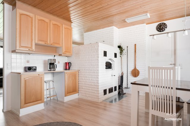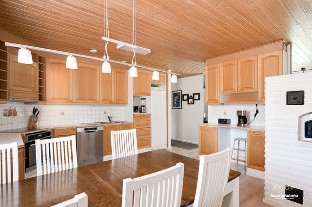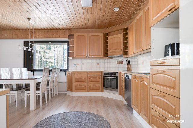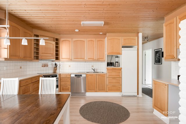 - Varustus: induktioliesi, uuni, astianpesukone, jääkaappi, leivinuuni. Arkkupakastin varastossa. Työtasot laminaattia.