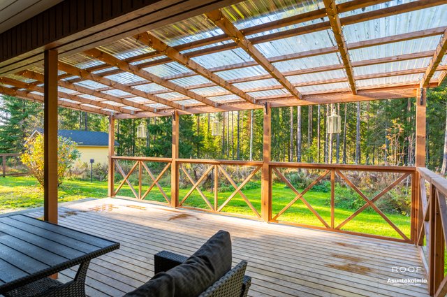 Yli 5000 neliön suojaisa, puuston ympäröimä tontti mahdollistaa monipuolisen harrastamisen. Tilaa kulkuvälineille löytyy runsaasti ja turvalliset maastot ulkoilemiseen kotieläimille ja perheen pienimmille. Tunnelmallinen grillikota kruunaa tämän huolitellun kokonaisuuden.