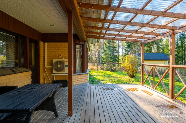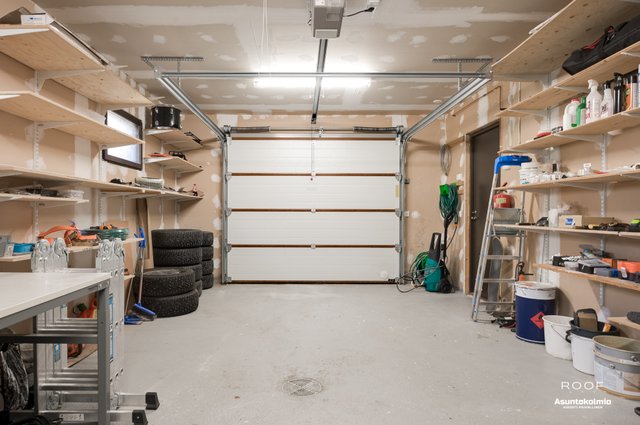 - Grillikota, kolme liiteriä (15m2, 15m2 ja 10m2). Autotallissa kaivo, ilmalämpöpumppu ja sähköinen nosto-ovi. Vesipiste varaston puolella. Voimavirtapistoke.