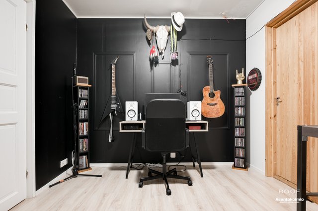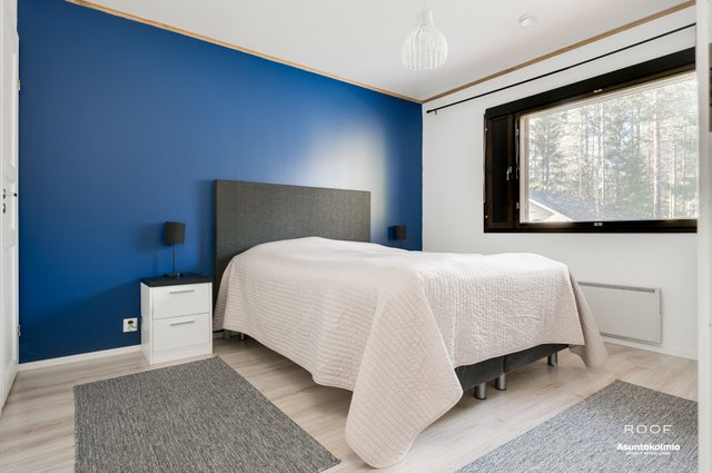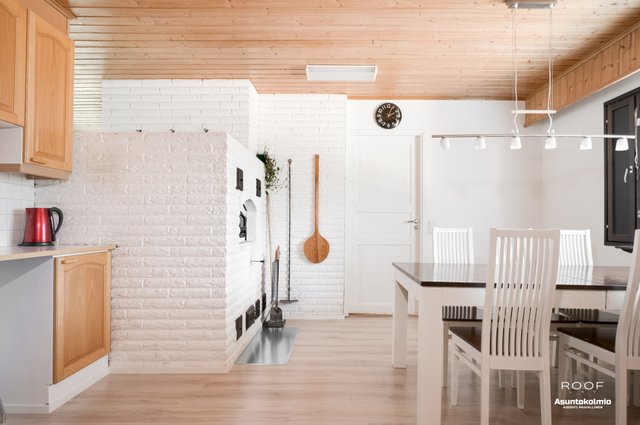 Talossa lämmitysmuotona on sähkö, mutta varaava takka, leivinuuni sekä ilmalämpöpumppu lisälämmönlähteenä pitävät sähkölaskut kohtuullisina läpi vuoden ja sähkönkulutus onkin ollut varsin maltillinen, vain 15 500 kwh/vuosi. Makuuhuoneet ovat tilavat, ja autotallin perällä olevasta varastosta loihdit lisämakuuhuoneen tarpeen vaatiessa. Talon yhteydestä löytyy myös harrastajan todellinen unelma - yli 25 neliön lämmin autotalli sähköisellä nosto-ovella, voimavirralla yms! Säilytystilaa on todella paljon kaapistojen, käyttöullakon, vaatehuoneen ja liitereiden ansiosta.