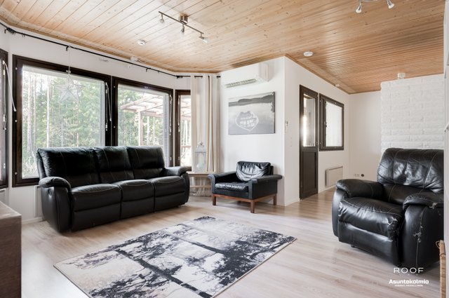 Tämä koti on rakennettu vuonna 1993 OMALLE, yli puolen hehtaarin tontille. Talosta on pidetty hyvää huolta vuosien varrella remonttien osalta: kylpyhuoneen ja saunan lattia on uusittu vedeneristyksineen vuonna 2005. Kattoremontti tehtiin vuonna 2011 ja ilmanvaihtojärjestelmä uusittiin 2008. Takapihan puolen terassi katettiin 2022 ja kylpyhuoneen pinnat saivat uuden yleisilmeen v. 2023. Lattiapinnat ovat hiljattain uusittu tyylikkääseen laminaattiin ja säilytystilaa lisättiin entisestään eteisen kaapistoilla ja turhan väliseinän purulla. Samassa rytäkässä myös erillinen WC uusittiin täysin!