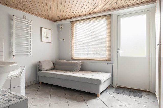 - Pesukoneliitäntä on alakerrassa varasto-/kodinhoitotilassa. Sinne mahtuvat myös pakastinkaappi, lisäjääkaappi, viinikaappi ym. tarpeen mukaan. Lattia ja seinät maalattua betonia.