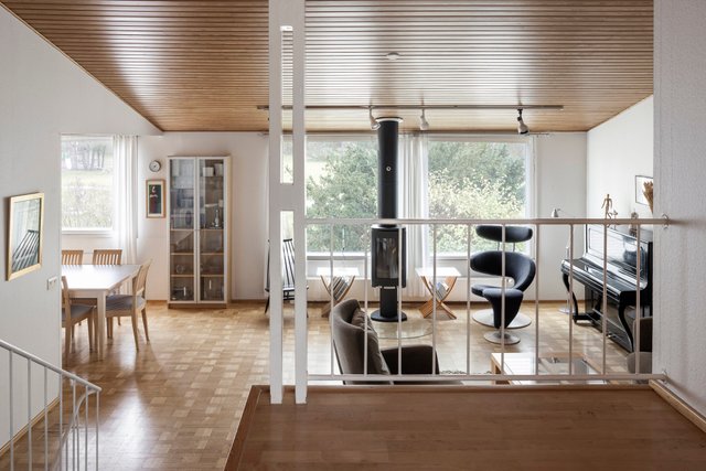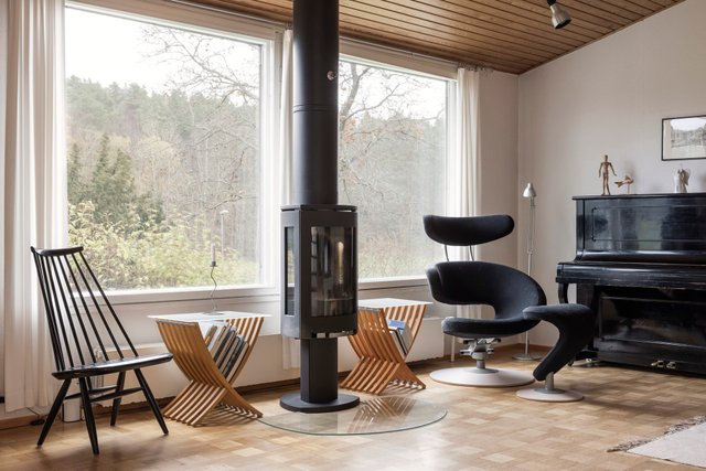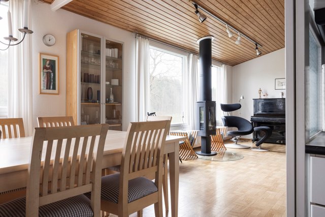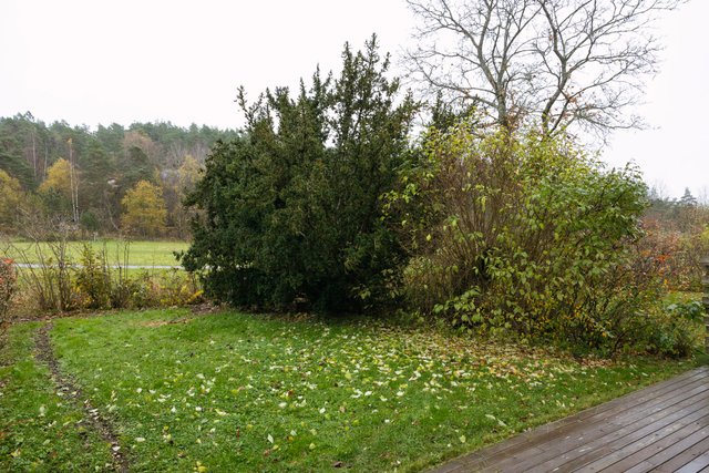 - Olohuoneesta, keittiöstä ja alakerran huoneista takapihalle ja isoon puistoon. Muista makuuhuoneista etupihan ja kadun yli näkyy metsäiset maisemat.