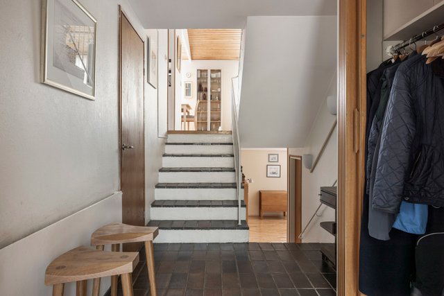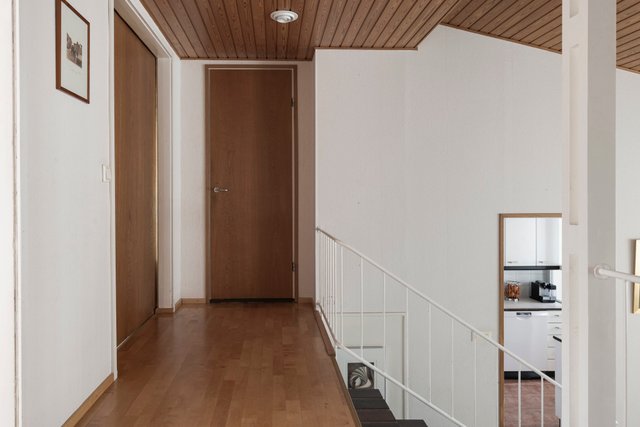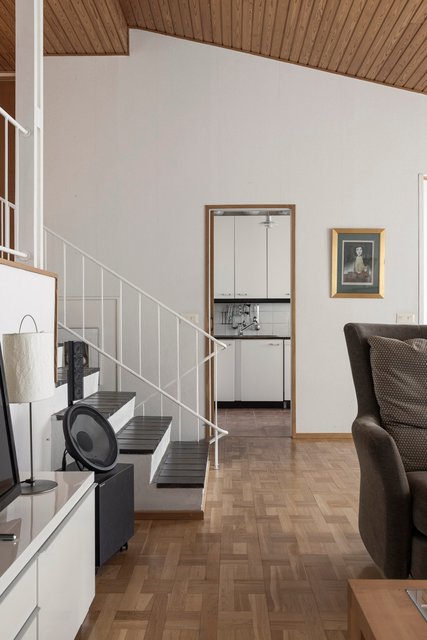 - Olohuone ja ruokailutila parkettia. Keittiössä laattalattia. Yläkerran toinen makuuhuone ja aula parkettia. Toisessa makuuhuoneessa laminaattilattia. Eteisessä alkuperäinen tiililaattalattia. Keskikerroksen ja alakerran makuuhuoneissa parvekelattiat. Saunassa, pesuhuoneessa, poreallashuoneessa, erillisessä wc:ssä ja yläkerran kylpyhuone/wc:ssä laattalattiat.